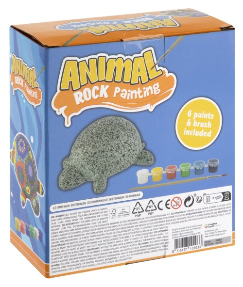 Malování kamene ve tvaru želvy. Balení obsahuje kámen, 6 barviček a štěteček. Baleno v krabici. Rozměry balení 16,8x18x7,5 cm. Věk 3+ (doporučeno od 5 let)