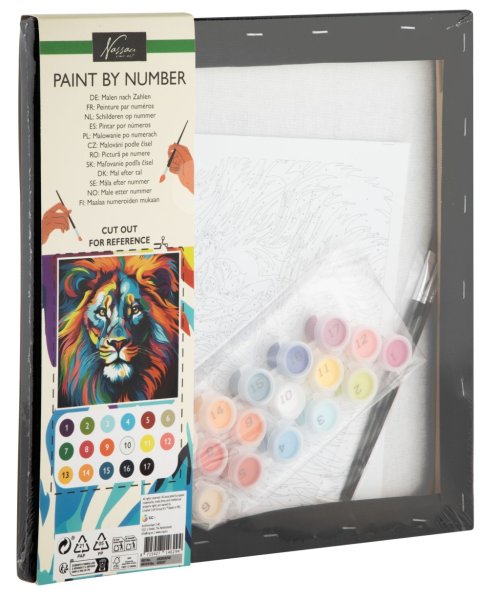 Kreativní sada pro milovníky zvířat a malování! Obrázek lva na černém plátně si můžete jednoduše vybarvit podle čísel, která odpovídají jednotlivým barvám. Malování podle čísel rozvíjí trpělivost, přesnost a smysl pro detail, přičemž hotový obrázek působí jako skutečné umělecké dílo.Obsah balení:1 plátno s předtištěným motivem, sada akrylových barev, štětec, návod. Ideální dárek pro děti i dospělé, kteří rádi tvoří a relaxují u malování.