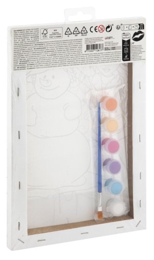 Malování podle čísel na plátno – dva různé druhy obrázků. Balení obsahuje předtištěný obrázek na plátně, vodové barvy – 6 ks a štetec. Vdelikost obrázku 29,7×19,5cm.