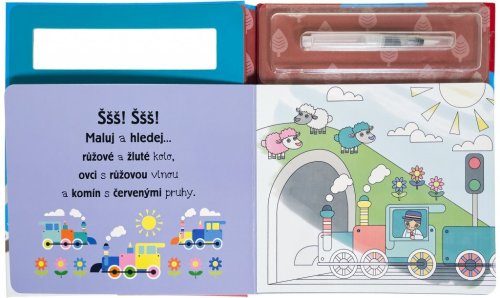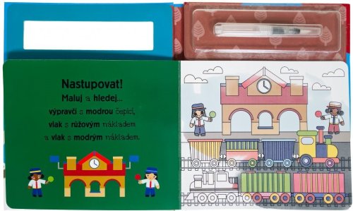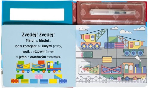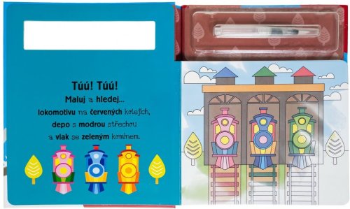 Užij si malování bez nepořádku s těmito znovupoužitelnými omalovánkami. Přetři obrázky vodou a hledej na stránkách ukryté vlaky, jejich části a silné stroje. Děti si s těmito omalovánkami s vodou užijí mnoho zábavy, procvičí si motoriku, trpělivost a poznávání barev. Až stránky uschnou, děti se mohou do vymalovávání pustit znovu! Znovu! A znovu!
