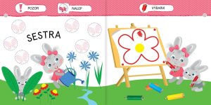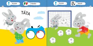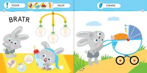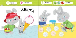 V této knížce najdou naši nejmenší malého zajíčka a plno jednoduchých aktivit, které jim pomůžou naučit se hravě a bez námahy členy rodiny.