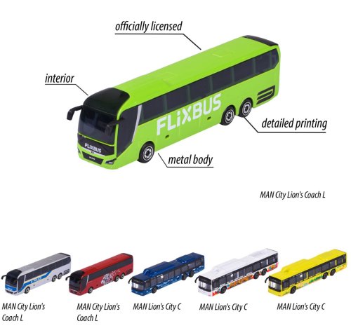 Kovový model autobusu na volnoběh. 6 druhů. Délka 13 cm.