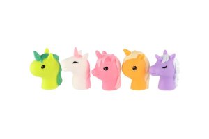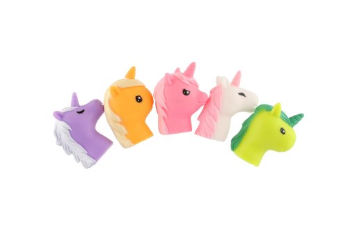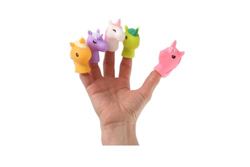 Děti si s prstovými jednorožci mohou zahrát maňáskové divadlo. Sada obsahuje 5 ks gumových jednorožců. Rozměr balení: 16,5 x 20 cm Vhodné od 3 let