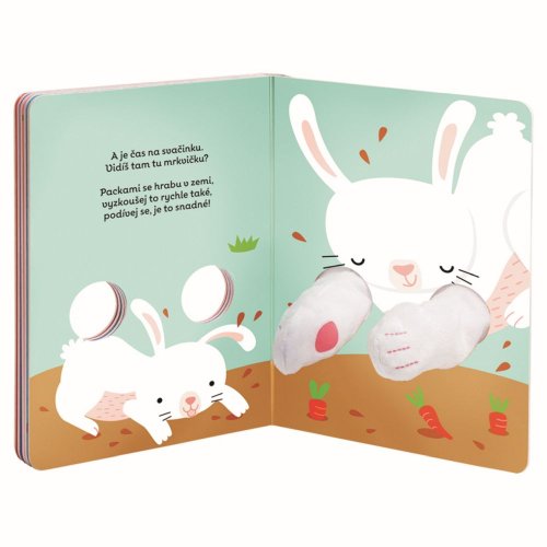 Je čas na mazlení! Měkké packy králičí maminky jsou jako stvořené pro vroucné objetí a něžné pohlazení. Vyzkoušejte si je a hrajte si spolu se svým děťátkem při čtení veselého příběhu o malém králíčkovi, který po boku své maminky odhaluje svět kolem sebe.