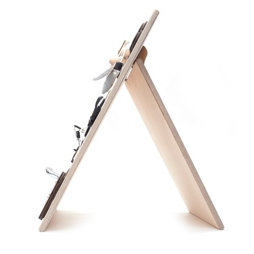 Dřevěný stojan k motorickým deskám Manibox. Sada obsahuje: stojan, upevňovací šrouby, panty.