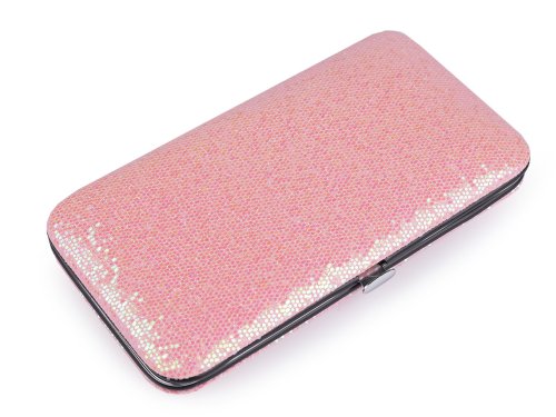 Manikúra v pouzdře potěší každou ženu či dívku. Její luxusní pouzdro s glitry se velice poutavě třpytí. Pouzdro má kvalitní kovový rám, který jednoduše otevřete stisknutím páčky a zavřete zaklapnutím. Povrch je kvalitní, glitry se neodírají. Manikúra je praktická, pohodlně se vejde do kabelky, je vhodná i na cestování. Manikúra obsahuje: nehtové nůžky, pilník, pinzetu, 5 kusů manikúrových nástrojů a 4 kusy nehtových kleští.