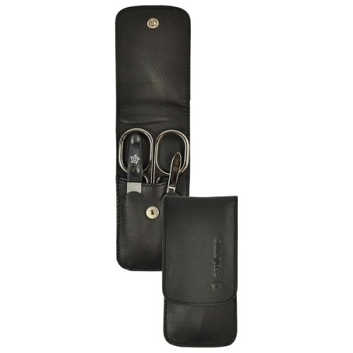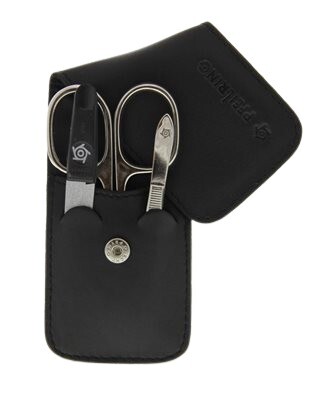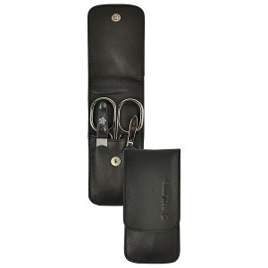 Cestovní manikúrová sada Pfeilring Solingen na úpravu nehtů. Manikúra je vyrobena z pravé kůže a má zapínání na skrytý patent.