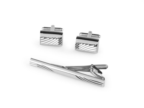 Manžetové knoflíky s kravatovou sponou v kovovém provedení skvěle ozdobí každého muže. Tato sada je vhodná pro širokou škálu příležitostí, od obchodních setkání po slavnostní události, jako jsou svatby či významné oslavy. Knoflíky i spona jsou z kvalitního kovu, mají precizní provedení. Sada je zabalená v dárkové krabičce, je vhodným dárkem, který muže potěší.