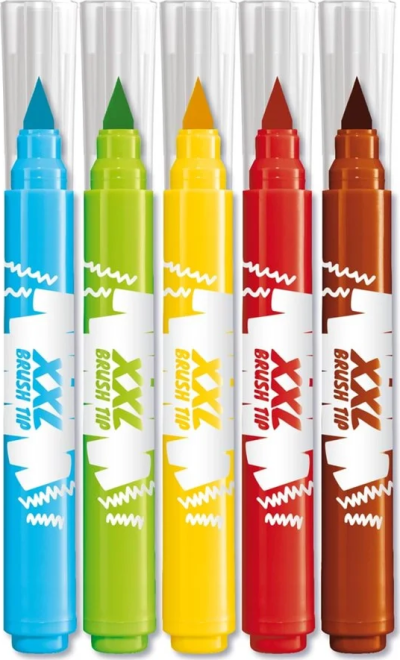 Souprava barevných fixů Maped Color’Peps XXL Brush s extra silným hrotem. Ideální pro vybarvení velkých ploch. Snadno vypratelný a omyvatelný inkoust. Zářivé barvy. Hrot odolný proti zatlačení či poškození, účinný uzávěr. Dlouhá životnost. Přednosti barevných fixů Maped ColorPeps: