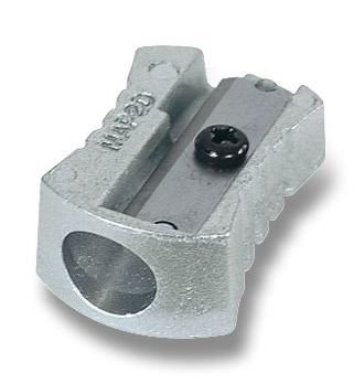 Kovové ořezávátko s 1 otvorem bez odpadní nádobky. Velikost výrobku je cca 3 x 2 x 1,5 cm.