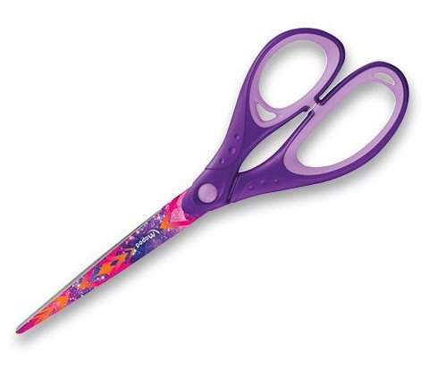 Nůžky dekorované speciálním lakem. Velikost 21 cm. Měkké asymetrické rukojeti. Dekorované čepele z broušené nerezové oceli. Fotografie je ilustrativní, barevnou kombinaci dodáváme dle aktuálních skladových zásob.