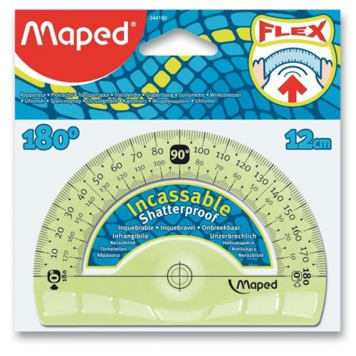 Ohebný a nezlomitelný úhloměr 180° se základnou 12 cm.