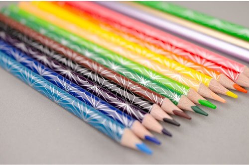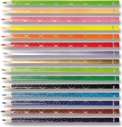 Stříbrné designové vzorování těla pastelky, jemné a plynulé vedení pastelky – intenzivní a jasné barvy, zářivé barvy díky vysokému obsahu pigmentu, z vysoce kvalitního lipového dřeva pro snadné ořezávání, nelámavá odolná a zároveň měkká tuha, trojhranný ergonomický tvar, vhodné pro kresbu na světlý i tmavý papír.