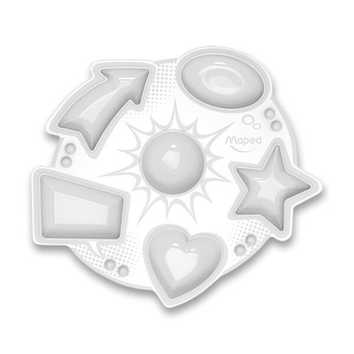 Plastová výtvarná paleta na 6 barev, včetně 4 držáků na štětec. zábavný design snadné čištění dodáváno včetně štětce  Rozměr: 19 x 15 cm