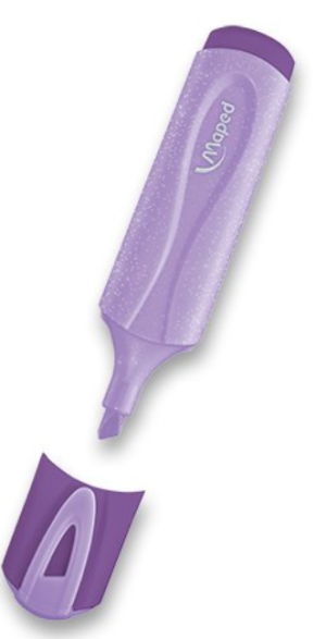 Plochý zvýrazňovač ve čtyřech pastelových barvách se třpytivými efekty.