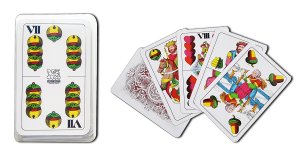 …herní sada zobrazuje na jednotlivých figurách legendu o Vilému Tellovi, obraz karet je s drobnými změnami stejný již 150 let. Obrazy jednotlivých es zobrazují roční období od jara do zimy. Hra zachovává oblíbený revers ve tvaru krajky.