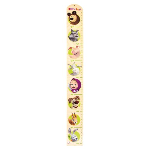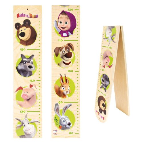 Metr přírodní barvy vyrobený z MDF desky potištěný vtipnými motivy ze známého dětského seriálu „Máša a medvěd" je skvělou dekorací do každého dětského pokoje. Měření výšky těla s roztomilými zvířátky je mnohem zábavnější. Malý otvor v záhlaví umožňuje snadné připevnění na zeď. Tištěná stupnice pro měření je v rozmezí od 80 cm do 160 cm výšky. V kombinaci s dalšími předměty z kolekce "Máša a medvěd" lze dětský pokoj proměnit v nádherný dětský ráj. Metr je přibližně 85,5 cm vysoký, 9,5 cm široký a 1 cm silný. Jedná se o dekorativní předmět, nikoli hračku. Hlavní vlastnosti: K měření dítěte od 80 do 160 cm