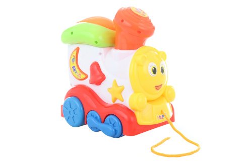 Plastová tahací mašinka. Při tahání a při zmáčknutí komína píská. Velikost cca 20 x 17 cm. Baleno v igelitovém sáčku. Věk 18 měs+