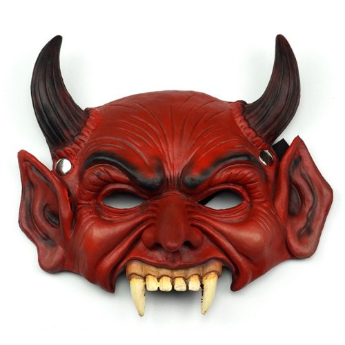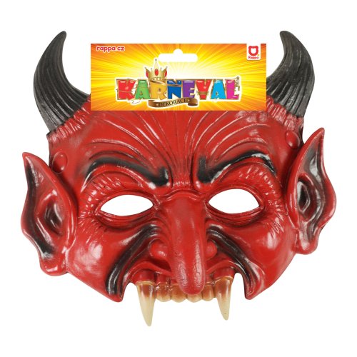 Gumová maska s motivem děsivého čerta nesmí chybět ve tvé karnevalové sbírce! Maska je vhodná na Halloween párty, vánoční besídku i karneval. Maska je pro snadné připevnění opatřena gumičkou.