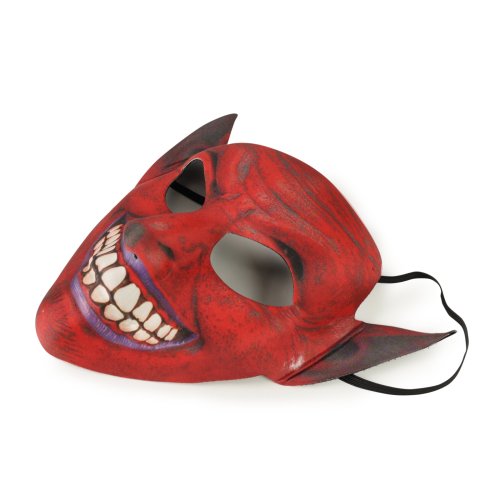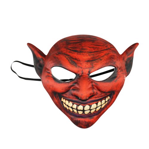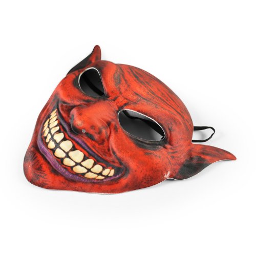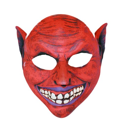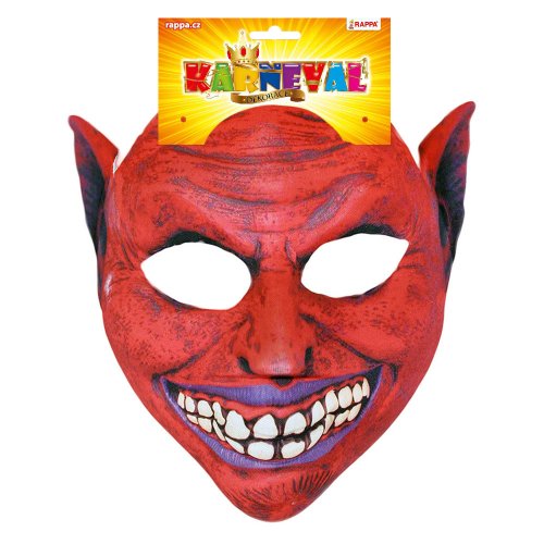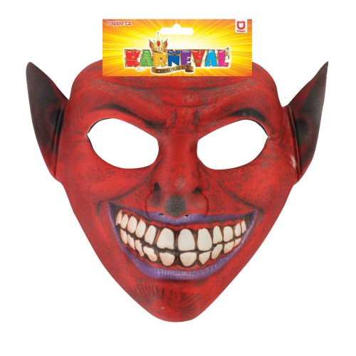 Textilní maska s motivem děsivého čerta nesmí chybět ve tvé karnevalové sbírce! Maska je vhodná i na Halloween párty, vánoční besídku i karneval. Maska je pro snadné připevnění opatřena gumičkou.
