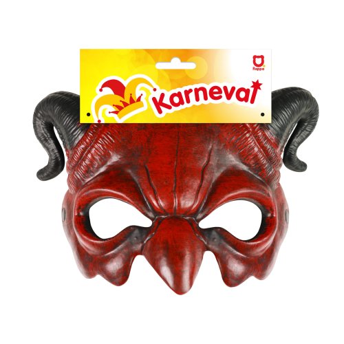Gumová maska s motivem děsivého čerta nesmí chybět ve tvé karnevalové sbírce! Maska je vhodná jak na Halloween párty, tak i vánoční besídku nebo karneval. Maska je pro snadné připevnění opatřena gumičkou.