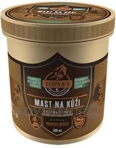 Mast na ekzematickou kůži je určena pro koně s kožními problémy. Originální receptura pokožku vyživuje, hydratuje a chrání před vnějším prostředím. Bylinná kompozice pokožku zvláčňuje, snižuje svědivost a obnovuje elasticitu. Je vhodná na rozškrábanou pokožku pro koně s letní vyrážkou. Mast vykazuje dlouhodobý účinek. Složení: Vazelína, Včelí vosk žlutý, Makadamiový olej, Konopný olej, Heřmánkový olej, Třezalkový olej, Řepíkový olej, Aloe vera, Lanolin, Mátová silice, Rakytníkový olej, Vitamín E, Měsíčkový olej. Návod k použití: Pokožku zbavte mechanických nečistot, aplikujte dostatečné množství a rozetřete na požadovanou plochu. Mast se velice snadno vsakuje. Používejte dle potřeby i několikrát týdně, v případě potřeby častěji. Optimálního výsledku dosáhnete při pravidelném používání. Upozornění: Používejte dle návodu k použití. Nepoužívejte na sliznice a otevřené rány. Nepoužívejte vnitřně. Pouze pro zvířata.