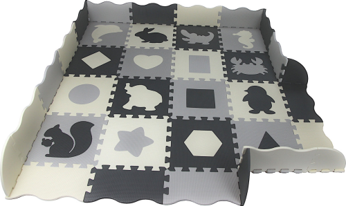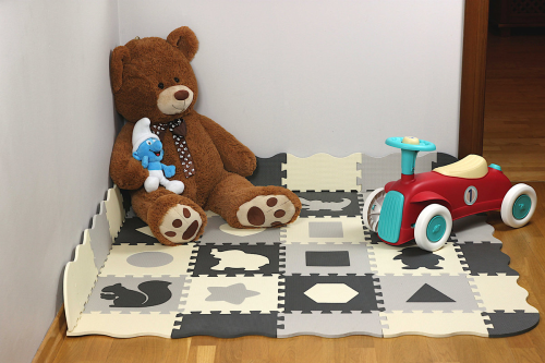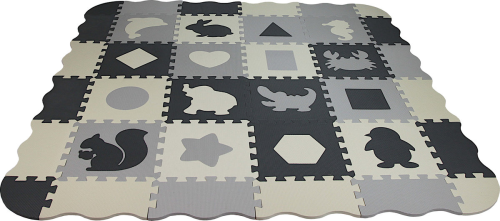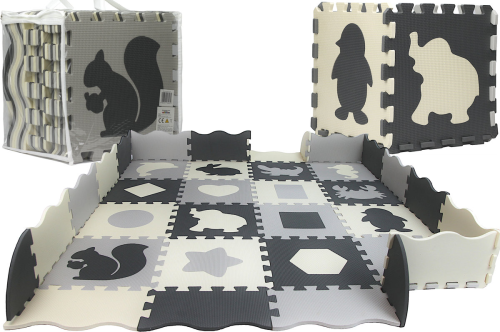 bezpečná a měkká podložka je omyvatelná pěnové puzzle tlumí hluk a izoluje od chladu ideální jako hrací koberec nejen do dětských pokojů puzzle má vroubkovaný povrch tloušťka pěnového puzzle je 0,9 cm balení obsahuje 16 čtvercových dílů, 16 okrajových dílů a 4 rohové díly velikost jednoho dílu je 28 x 28 cm (měřeno od zubu po výřez)