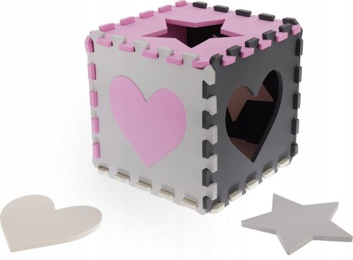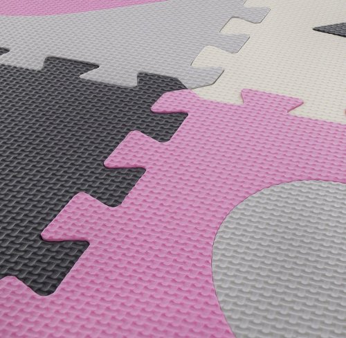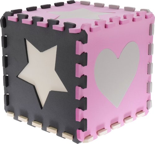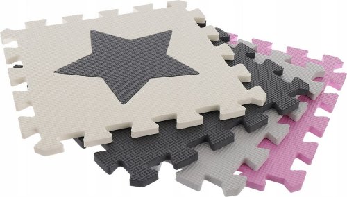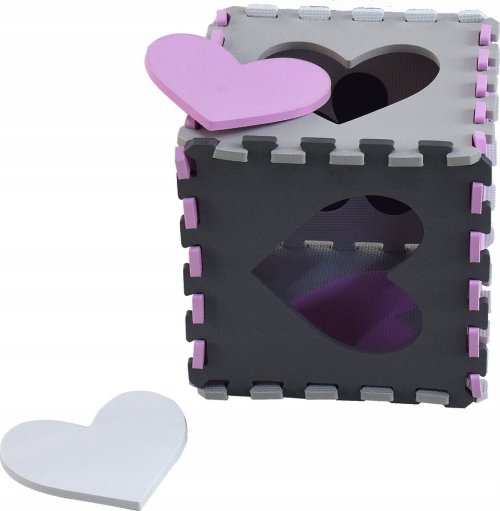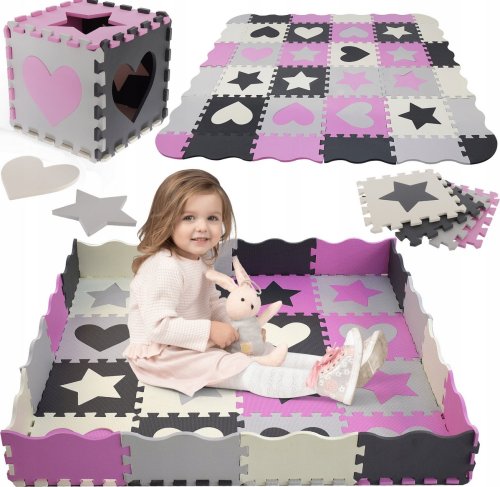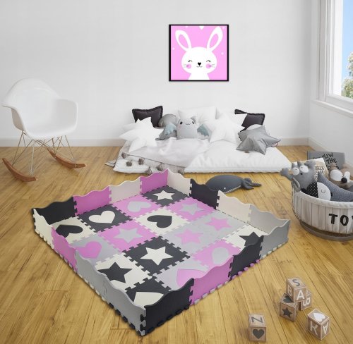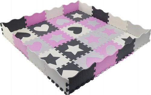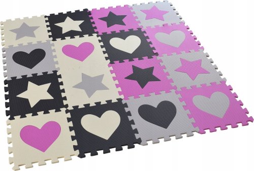 Pěnové puzzle s motivem růžových a šedých hvězd a srdcí s vyjímatelnými dílky pro děti od 3 let.