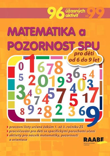 96 úžasných aktivit pro nácvik matematiky, pozornosti a orientace žáků se specifickými poruchami učení v 1. až 3. ročníku ZŠ Aktivity v knize MATEMATIKA A POZORNOST SPU jsou připravené odborníky na míru dětem se specifickými poruchami učení, které mají obtíže se zvládáním základních početních úkonů, potíže s pozorností a s orientací či mají přímo diagnostikovanou poruchu matematických schopností – dyskalkulii. Kniha je určena nejen dětem 1. až 3. tříd, ale i dětem, které s počítáním teprve začínají. Pracovní listy jsou vhodné k nácviku i docvičování, ke skupinové i individuální práci ve škole, ale i pro nácvik v domácím prostředí pod vedením rodičů. 96 aktivit nabídne Vašemu dítěti trénink pozornosti a orientace nejen při výuce matematiky. Pomocí této knihy předejdete školnímu neúspěchu Vašeho dítěte se specifickou poruchou učení. Kniha je určena dětem od 6 do 9 let. Ediční řada 100 úžasných aktivit nabízí pracovní sešity vycházející z oblíbených sešitů KuliFerda a jeho svět. Každý pracovní sešit nabízí 100, resp. 96 odborně připravených pracovních listů pro děti předškolního a mladšího školního věku. Sbírky pracovních listů pro rozvoj grafomotoriky, předmatematických dovedností, vnímání a řeči aj. jsou užitečnou pomůckou nejen pro učitelky MŠ a ZŠ, ale i pro rodiče a prarodiče, kteří chtějí mít jistotu, že jejich předškolák a školák s SPU bude kvalitně připraven na vstup do školy, resp. projde prvními ročníky ZŠ bez obav a úspěšně.