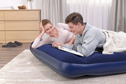 Matrace je vyrobena z pevného a odolného vinylu a má zabudovanou nožní pumpu. Horní část je potažena měkkým materiálem, pro zpříjemnění relaxace. Odolná konstrukce a pružnost matrace je zaručena díky nafukovacímu rámu typu coil-beam, což je spojení horní a dolní vrstvy matrace pomocí komor. Matrace je velmi pohodlná, je ideální na zahradu, na kempování ve stanu. V domácnosti ji můžete využít jako náhradní postel pro hosty. Součástí balení je opravná záplata.
