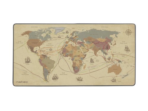 UNIKÁTNÍ A PRAKTICKÁ GRAFIKA Hlavním charakteristickým rysem Natec DISCOVERIES je jedinečná grafika zobrazující polickou mapu světa spolu s hlavními expedicemi éry velkých geografických objevů. Trasy zahrnují jména průzkumníku, data jednotlivých vyprav a názvy i náčrty lodí. Navíc vkusná grafika děla podložku nejen zajímavým doplňkem na vašem pracovním stolu, ale může být užitečná také během studia, ale i při každodenním používání. Díky tomu podložka nejen usnadňuje pohyb myši, ale také pomáhá při práci, studiu, nebo zábavě.