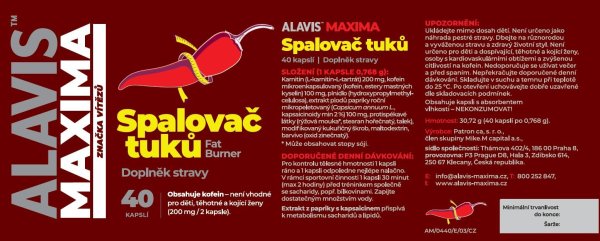 Spalovač tuků je doplněk stravy, který obsahuje mikroenkapsulovaný kofein s prodlouženým uvolňováním a koncentrovaný extrakt papriky s kapsaicinem s postupným uvolňováním účinné látky bez žaludečních potíží.