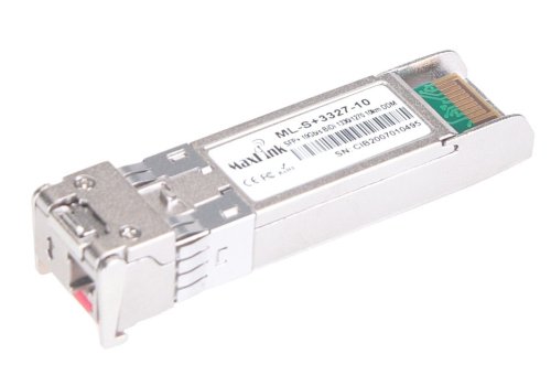 MaxLink 10G SFP+ optický modul, WDM(BiDi), SM, Tx 1330/Rx1270nm, 10km, 1x LC konektor, DDM ML-S+3327-10 je singlemode 10G SFP+ WDM modul pro přenos dat pomocí jednoho vlákna s jedním LC konektorem. Vlnová délka (Tx/Rx) tohoto modulu je 1330/1270nm a je vhodný pro spojení až na vzdálenost 10km. Modul je "cisco compatibile" a je kompatibilní téměř se všemi aktivními prvky. LC konektory v SFP modulu mají broušení typu UPC.
