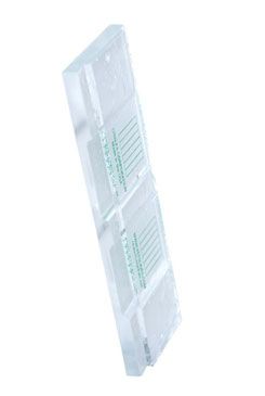McMaster counting slides - počítací komůrky se zelenou mřížkou pro stanovení počtu hlístic vajíček na gram výkalů