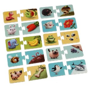 Puzzlika, nová značka puzzlů s moderním kreativním designem, přináší pro malé děti aktivní učení formou zábavné hry. Víte které zvířátko co jí? V krabičce naleznete 20 velkých pevných puzzlů tvořících 10 samostatných dvojic kartiček, které spolu tematicky souvisejí. Jedna polovina kartiček obsahuje ilustrace jednotlivých zvířátek a na druhé polovině kartiček je vyobrazeno jídlo, kterým se živí. Cílem je vytvořit správné kombinace a nasbírat co nejvíce párů. Naučné puzzle je skvělá hra pro malé děti, která u nich rozvíjí logické myšlení, představivost, kreativitu, jemnou motoriku a různé poznávací znalosti. Puzzle jsou vyrobeny z velice pevného vícevrstvého kartonu s lesklým povrchem. Karton byl vyroben z kvalitního, ekologicky pěstovaného dřeva. Puzzle je možné otřít vlhkým hadříkem. Nevhodné pro děti do 2 let. Vyrobeno v Evropě.
