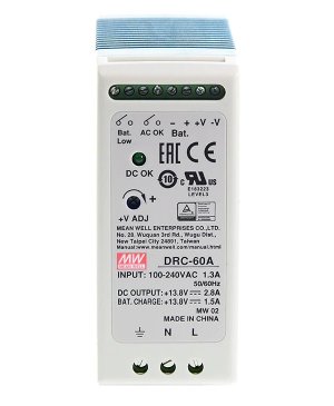 Průmyslový dvoukanálový napájecí zdroj 13,8 V pro instalaci na DIN lištu s rozsahem vstupního napětí 90-264 V (AC) nebo 127-370 V (DC) a výkonem 60 W. Je určený pro aktivní prvky s odpovídajícím napájecím rozsahem. Životnost MTBF (střední doba mezi poruchami) je více než 504 100 hodin, navíc zdroj splňuje vojenský standard MIL-HDBK-217F.