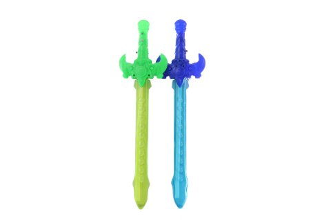 Plastový meč na knoflíkové baterie, které jsou součástí balení. Po zapnutí svítí a vydává zvuky. Baleno v plastovém sáčku. Rozměry meče cca 39x11 cm. Věk 3+