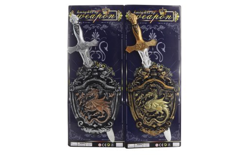 Plastový meč o velikosti cca 49 cm a štít o rozměrech cca 26 x 19 cm. Rozměry balení cca 52,5 x 21 x 2 cm. Věk 3+