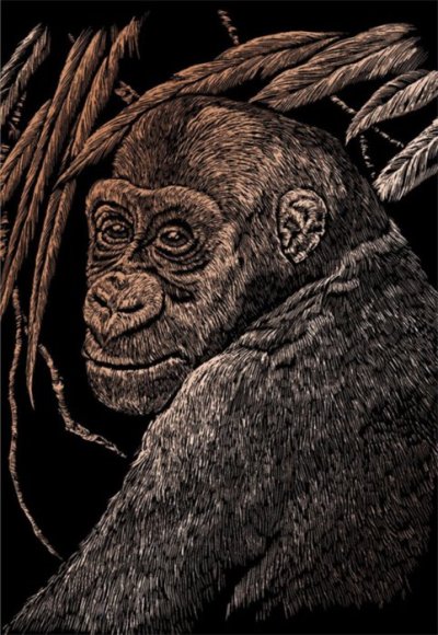 Přiloženým škrabacím perem vyškrábejte linky předtištěného obrázku. Fantazii se meze nekladou, proto je možné vyškrábat i černá místa bez potisku a dodat obrázku osobitý rámeček.