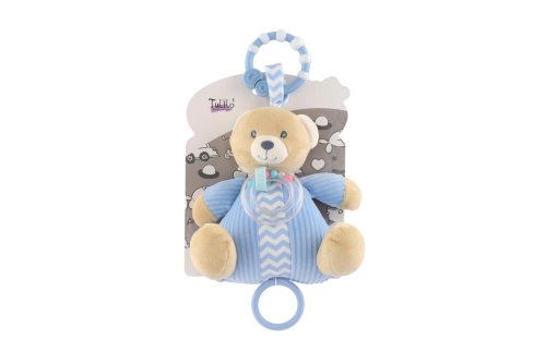 Hrací strojek se zvířátkem zaručeně upoutá pozornost Vašich malých dětí díky uklidňující melodii, kterou vydává. Délka melodie po natažení cca 1 minuta 20 vteřin. Plyšová hračka má také chrastítko. Rozměr medvěda: 18 x 18 cm Vhodné pro děti od 0 měsíců