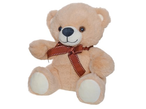Medvěd plyšový 20 cm sedící s mašlí na baterie se zvukem - mix barev (světle hnědá, tmavě hnědá)