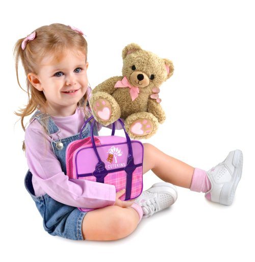 Plyšový medvídek s módní kabelkou. Medvídka můžeš pohodlně nosit v kabelce. Výrobek je vhodný pro děti od 2 let.