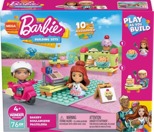Užijte si zábavu při stavění a hraní si s Mega Construx Barbie™ oblíbená místa – v pekárně nebo při dobrodružství s koníkem (Prodávají se samostatně). Hrajte si při stavění s doplňky pro hraní různých rolí a přizpůsobte si své mikropanenky Barbie™ pomocí 3 módních doplňků. Tyto stavebnice jsou určeny pro začátečníky, snadno se staví a nabízejí tolik možností k vyprávění příběhů v každém kroku stavění. Barvy a vzhled výrobku se mohou lišit. Ideální pro stavitele od 4 let.