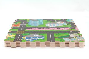 Postavte dětem město v podobě pěnového koberce - puzzle o velikosti 118 x 118cm. Děti si užijí si spoustu zábavy a navíc na bezpečném měkkém místě. Eva foam, ze které jsou vyrobeny je nezávadná a plně omyvatelná