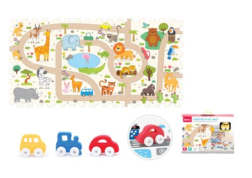 Měkké bloky s autíčkem safari 8ks. Obsahuje 8 bloků 31,5x31,5x1cm, autíčko s volnými koly.