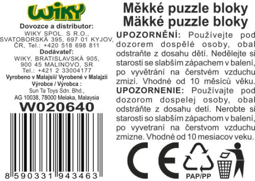 Měkké bloky, 4 ks, motiv zvířátka. Rozměry 60 x 60 cm. Tloušťka 1 cm.