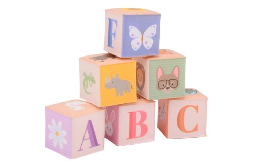 Měkké kostky Happy World – 6 ks barevných měkkých kostek s písmenky a zvířátky v pastelových barvách. Vhodné i do vany. Učí děti poznávat velikosti, tvary a barvy.