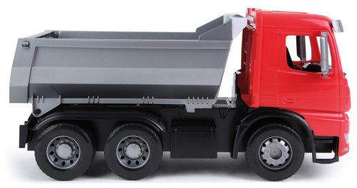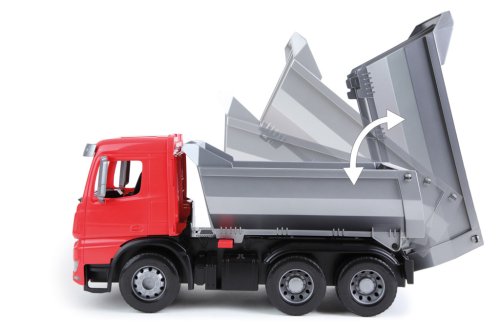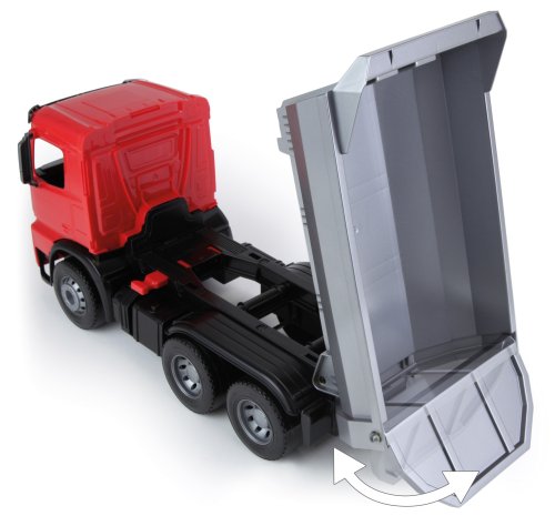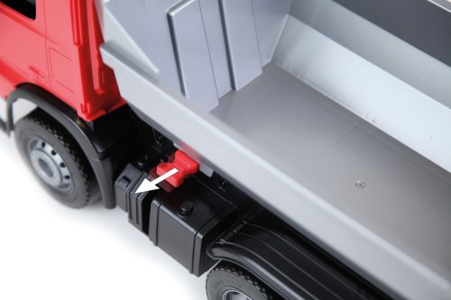 Mercedes Arocs sklápěč. 6mm tlusté kovové osky u kol. Součástí je pojistka proti nežádoucímu vyklopení korby.