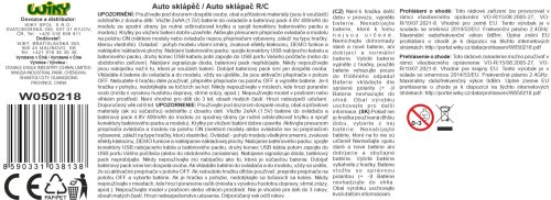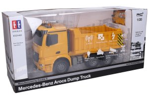 Mercedes Auto sklápěč RC na dálkové ovládání. Rozměry 35x14x17 cm. Frekvence 2.4GHz. Světelné a zvukové efekty. Bateriový pack 4.8V 400mAh do sklápěče součástí, 2xAA baterie do ovladače nejsou součástí. USB kabel součástí. Přepínač ON/OFF na spodní straně auta a na spodní straně ovladače. Ovladač - levé tlačítko - ON/OFF, pravé tlačítko - klakson, prostřední tlačítko - DEMO, levé přední tlačítko - naklápění nakládací plochy, pravé přední tlačítko - sklápění nakládací plochy.