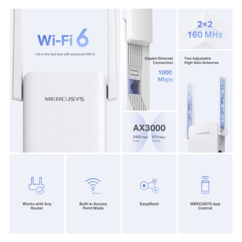 WiFi extender Mercusys ME80X AX1800 Wi-Fi Range Extender